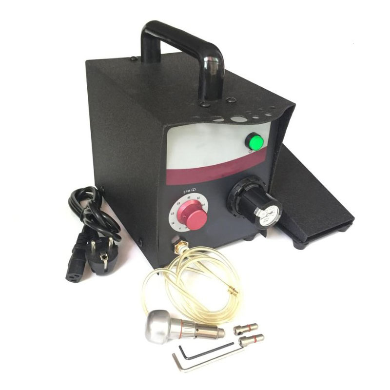 握住手机垂直使用,刀架最终,旁边的耳朵旁边。踩下脚压杆或鼠颈控制,慢慢增加气压,直到手持码开始嗡嗡声。切断到手持式气压直到手持式振动和敲击。将气压增加,直到爆震停止和2 psi(.13 bar)。这是每个手机的完美空气压力。现在,您可以自由地将SPM(每分钟中风)拨号移动到所需的任何设置。